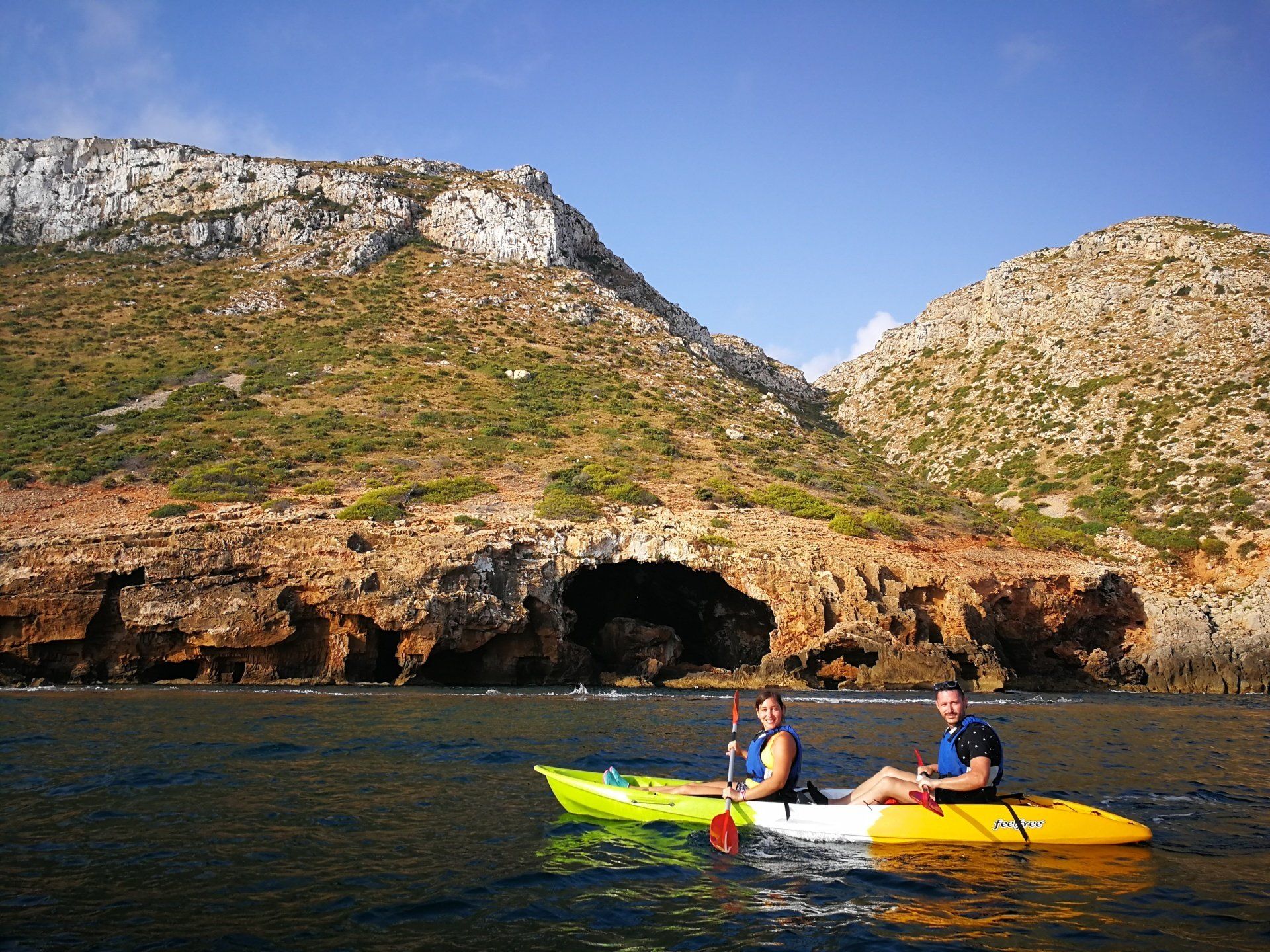 Tour kayak por Denia visitando una antigua cantera del siglo XI a nivel del mar