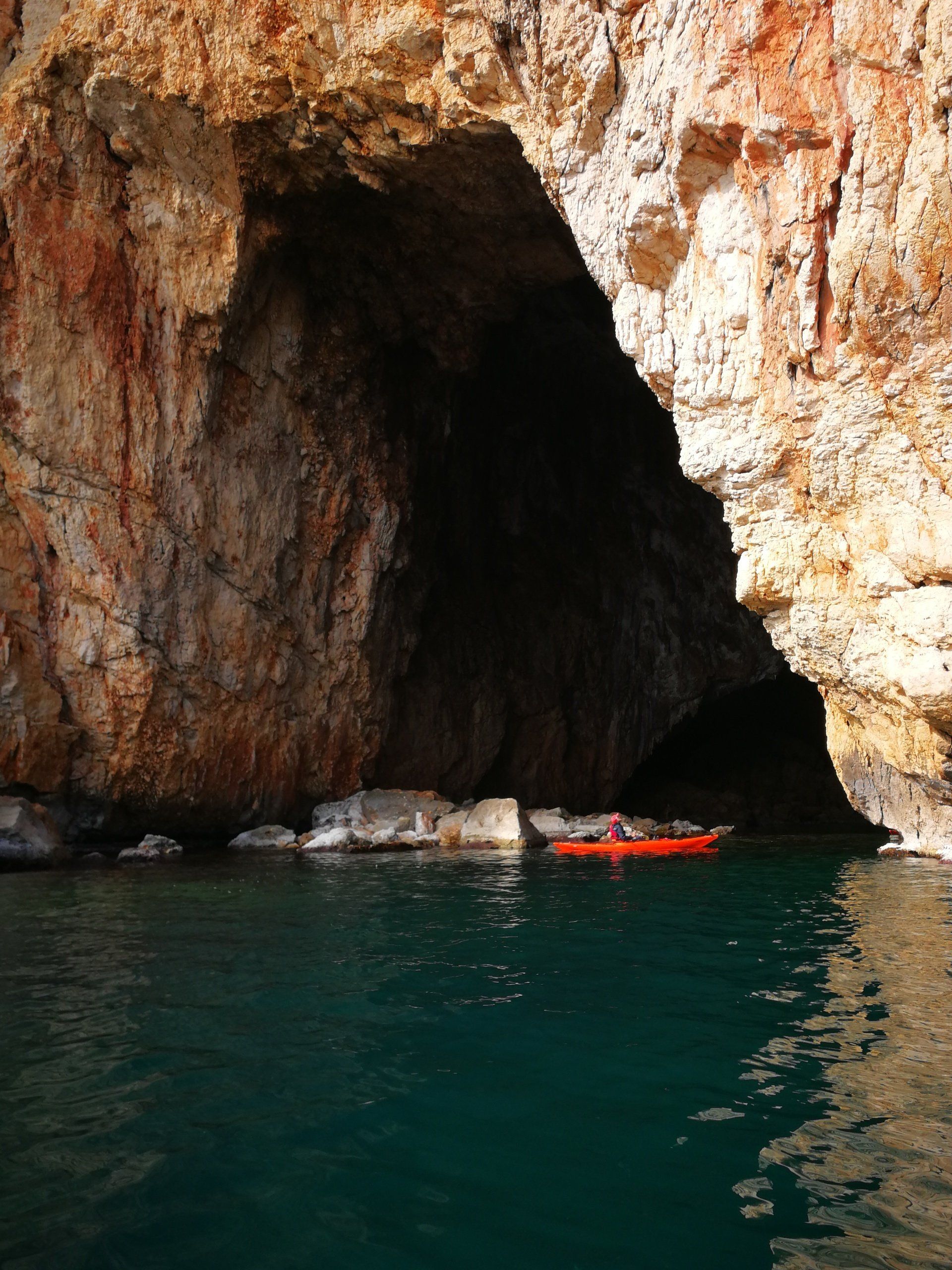 Tour kayak por Denia visitando una antigua cantera del siglo XI a nivel del mar